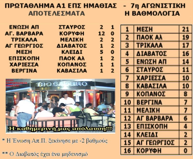 ΑΠΟΤΕΛΕΣΜΑΤΑ ΚΑΙ ΒΑΘΜΟΛΟΓΙΑ ΤΗΣ Α1 ΕΠΣ ΗΜΑΘΙΑΣ- 1η ΑΓΩΝΙΣΤΙΚΗ